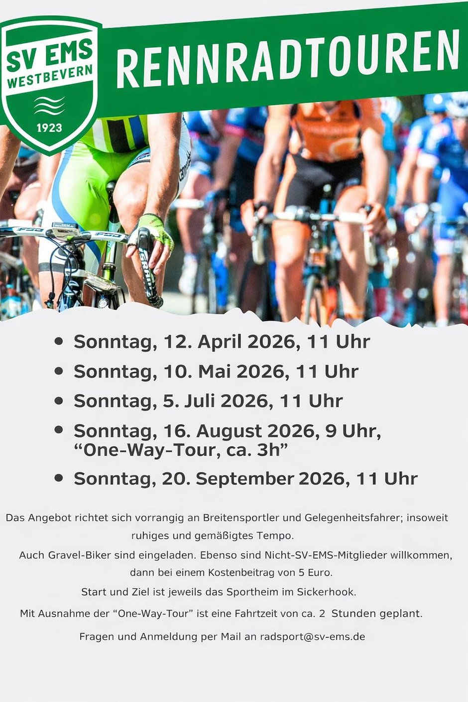 der SV Ems bietet auch dieses Jahr wieder Rennradtouren an.